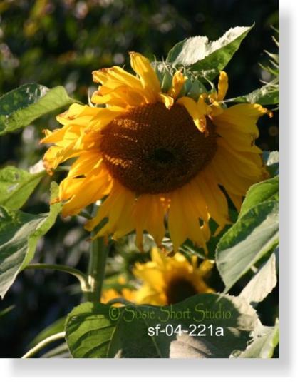 | The high resolution digital reference photo below (sf-04-221a) was selected from Susie Short's personal photo collection of sunflowers. The high quality color laser print comes on heavy 8.5 x 11 paper and may be purchased with or without the transfer painting pattern / drawing guide. |