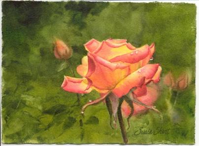 | A Rose with Dewdrops 5 x 7 Transparent Watercolor © Susie Short Studio LLC All Rights Reserved |