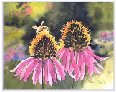| Honeybee on a Coneflower 6 x 8 Transparent Watercolor © Susie Short Studio LLC |