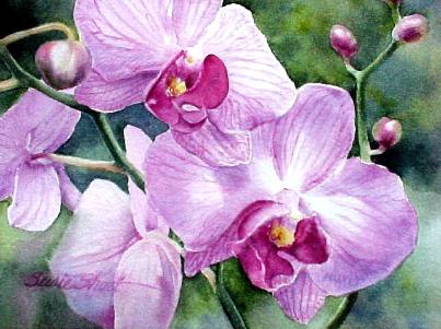 | Orchids for Marilyn 5 x 7 Transparent Watercolor © Susie Short Studio LLC |