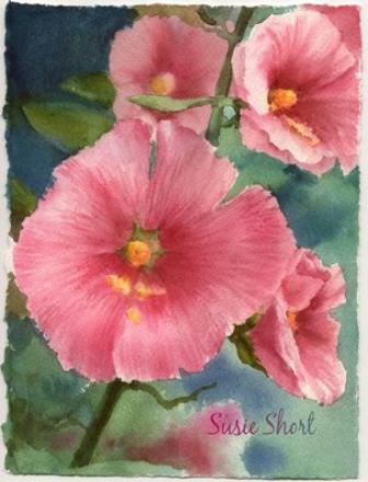 | Christine's Hollyhocks 5 x 7 Transparent Watercolor © 2005 Susie Short Studio LLC |