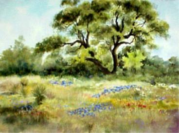| Autumn Serenity - Lost Maples State Park near Vanderpool, Texas 22x30 Transparent Watercolor (c) Susie Short |