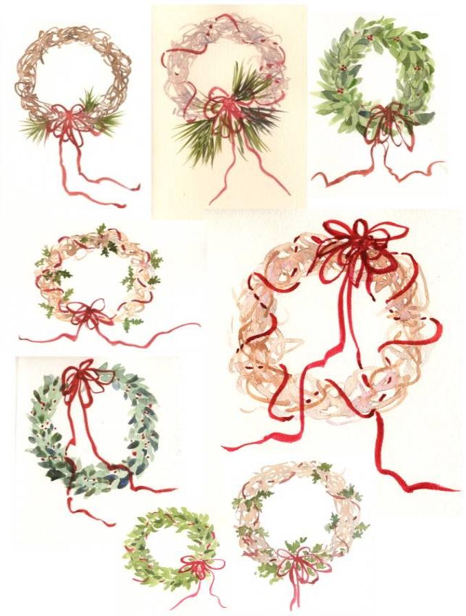 | For more details for painting wreaths and other Christmas card designs look for my DVD Painting Holiday Cards |